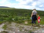 Maisemat ovat kiehtovat. Saarekkeilla menee kaponen polku ja molemmin puolin lampia. Näen metsässä Ari nimisen poron, sillä se pysähtyy tottelevaisesti, kun tökkäsen ukkoani ja sanon ”Ari!” ja osoitan poroa. Hetki tuijotusta ja poron lähtönopeus on porukastamme parhain.