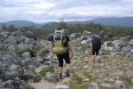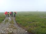 Aamulla satoi, joten puimme sadevaatteet päälle. Tampereen Allut lähtivät Jyrkkävaaraan, Iisalmelaiset Lumikurun suuntaan ja Tyyne-koiralla ei ollut vielä actionplan selvillä. Kiva alue, koska täällä todellakin riittää vaihtoehtoja kulkemiseen. Kun olimme rinkkoja vailla valmiit, niin sade loppui. Jätimme silti vettäpitävät housut jalkaan ja lähdimme matkaan klo.12.30 Jyrkkävaaran suuntaan.