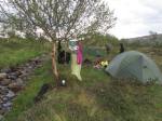 Käymme lammessa pitkän kaavan mukaan puhdistautumassa. Otamme ämpärin mukaan, niin saadaan hieman saippuoida itseämme ja sopivan matkan päästä lammesta ”käymme suihkussa”, ettei pesuaine pääse pieneen lampeen. Mulla on aina vaelluksilla pikku silikonituubissa sitä Leo Messin mainostamaa shamppoota, jossa on hoitoaine samassa. Sillä sitten pesen kaiken jos huvittaa tai on mahdollisuus eli pyykit ja itseni.